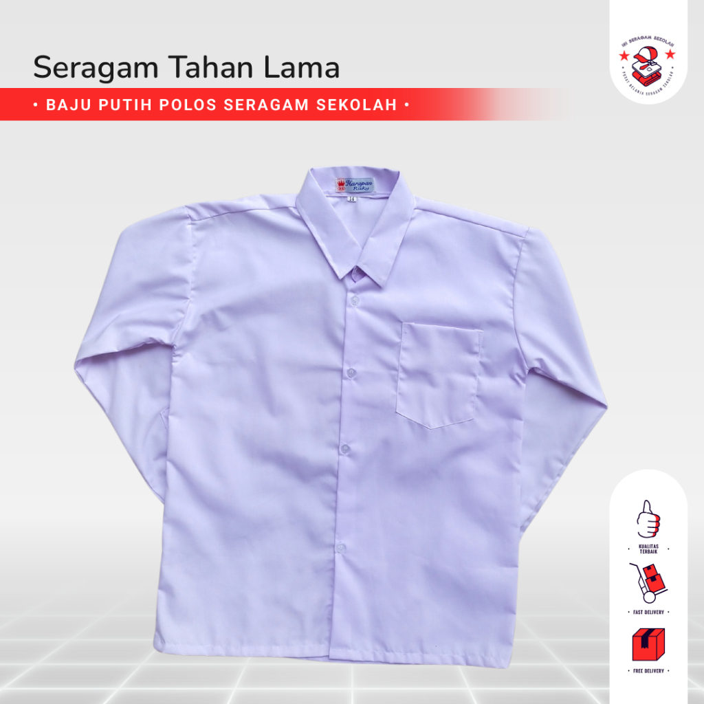 Seragam Sekolah TK SD SMP SMA Baju Kemeja Putih Polos Pria Lengan Panjang Formal Kerja Kantor Magang