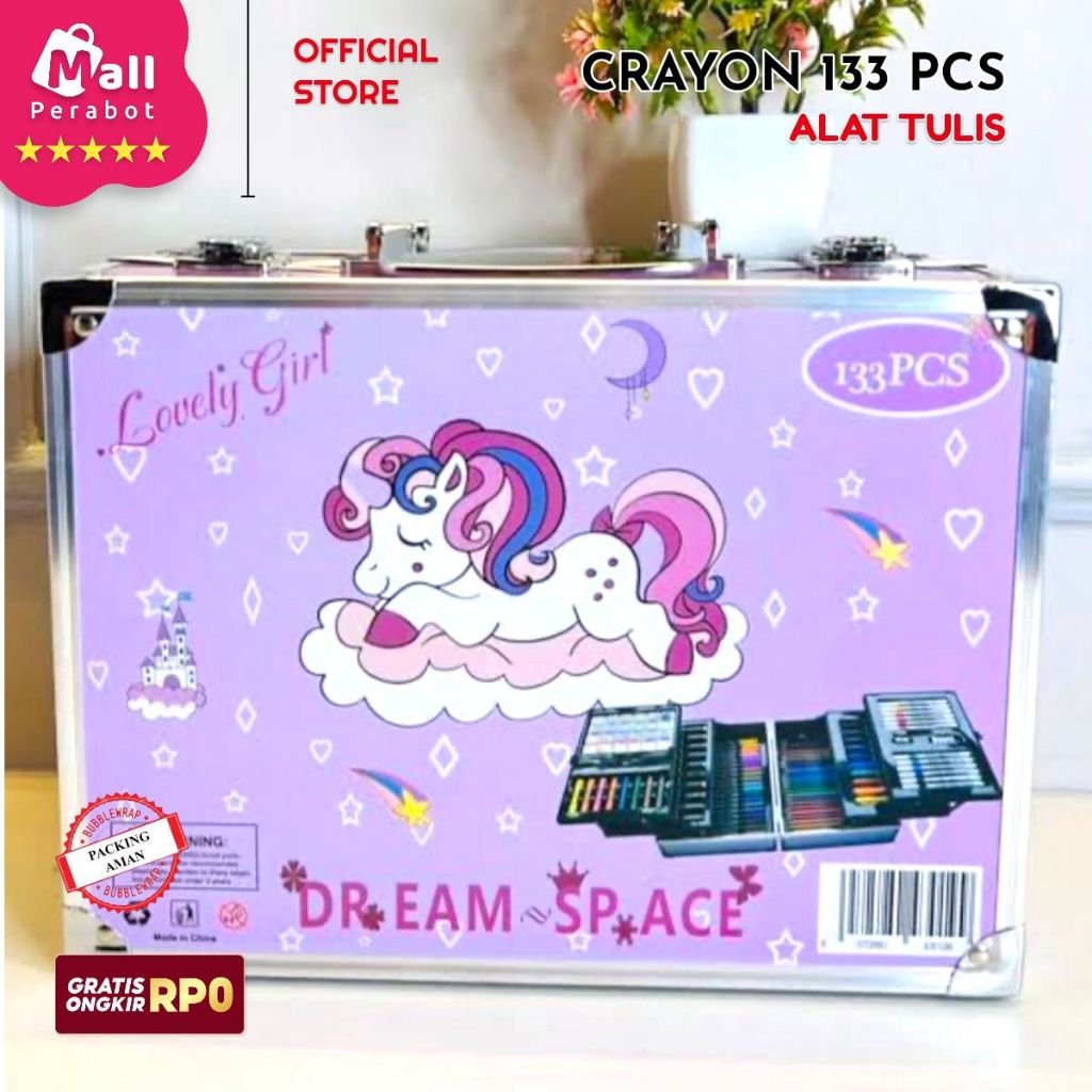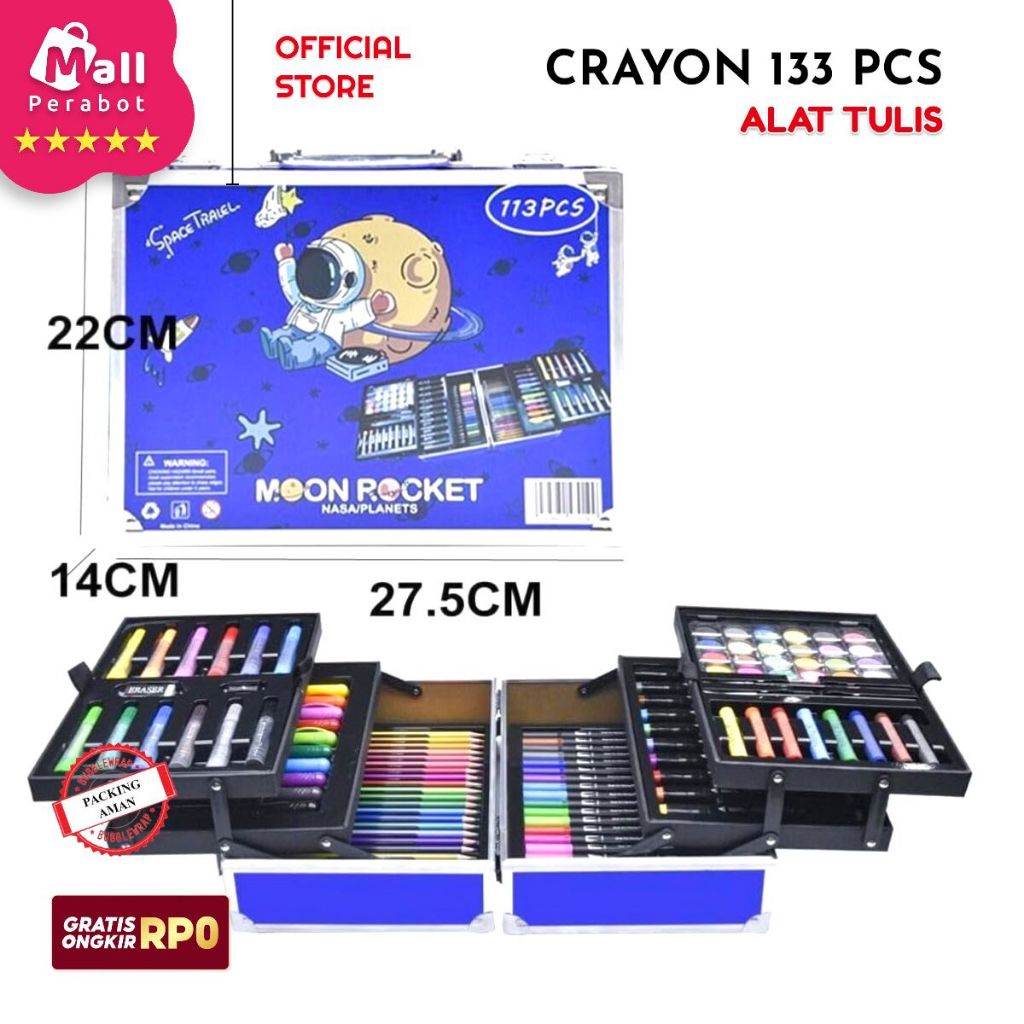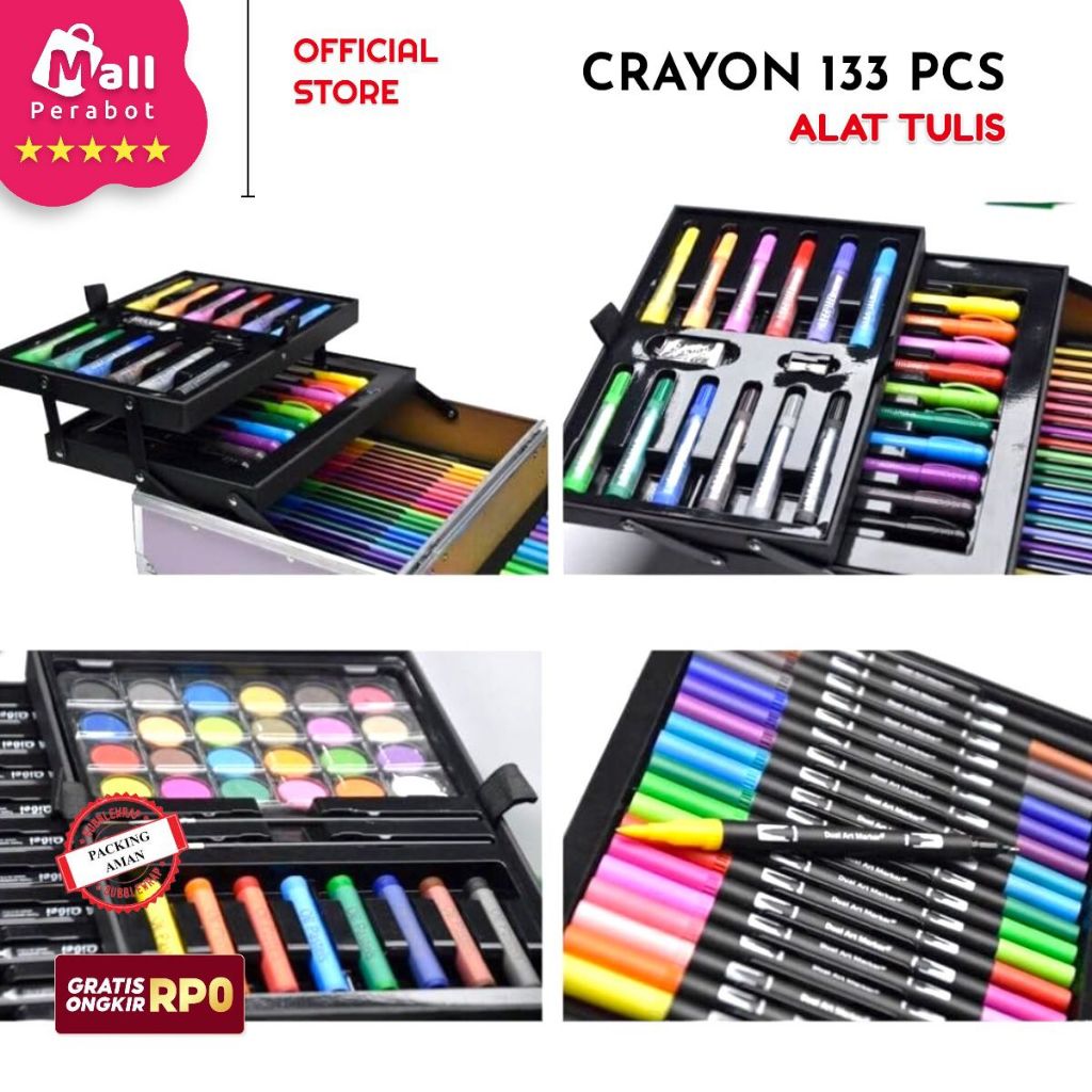 Mall Perabot | Crayon Set 133 Pcs Koper Aluminium Besi | Box Alat Lukis Anak Koper Set | Krayon Mewarnai Anak | Pensil Warna | Perlengkapan Mewarnai Lukis