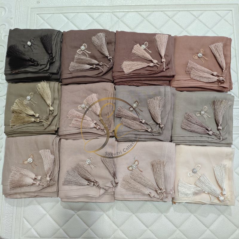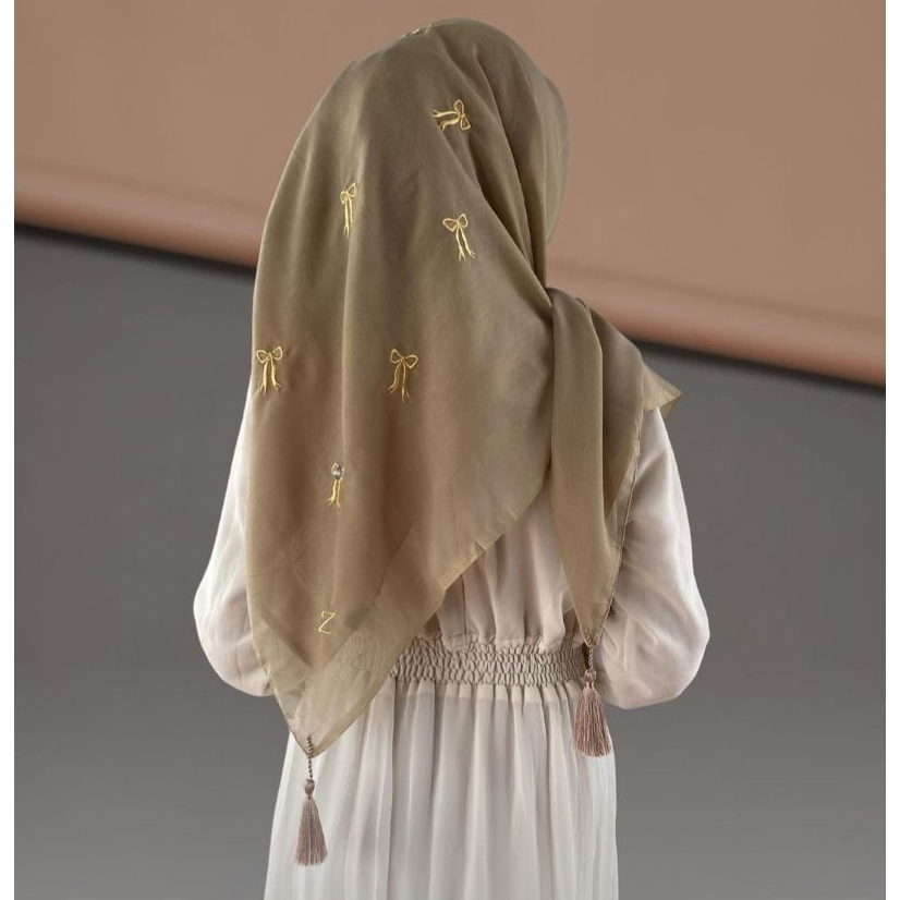 Hijab Segi Empat Paris Premium Coquette Bordir Pita // Jilbab Tassel Coquette