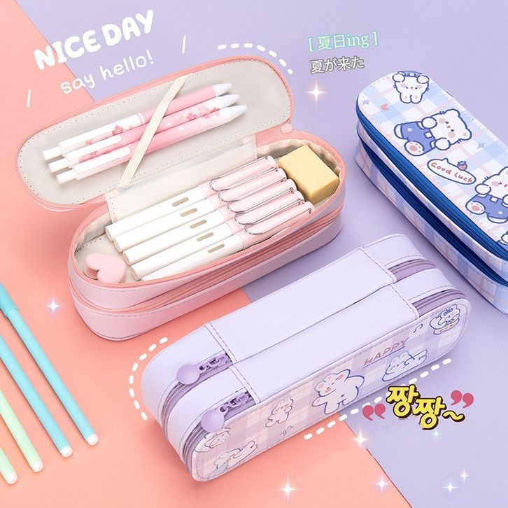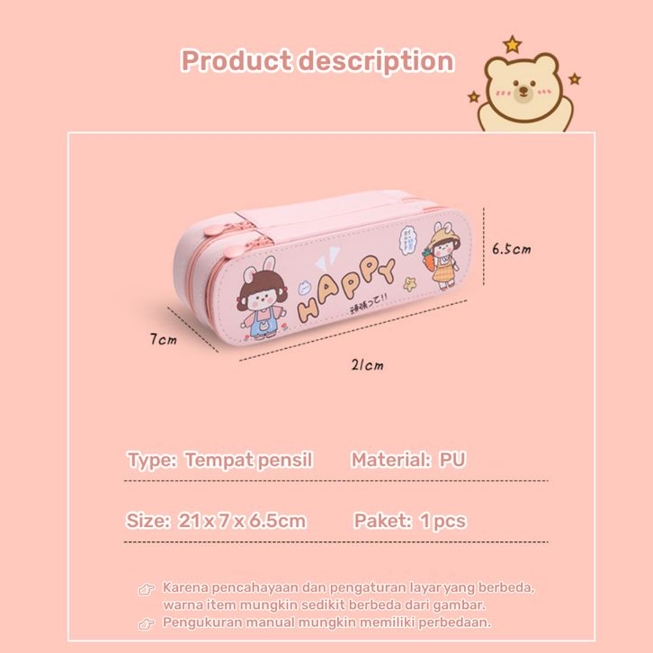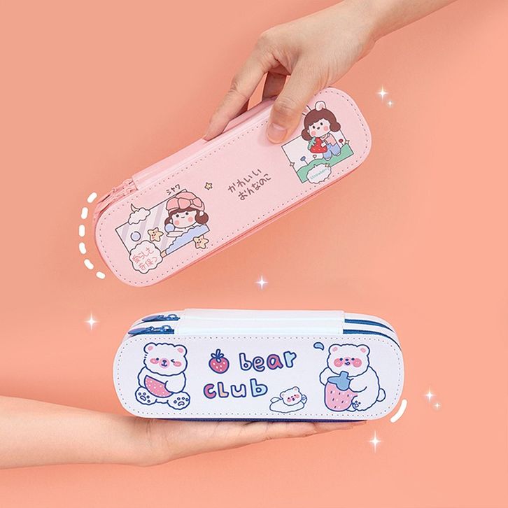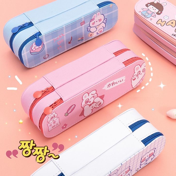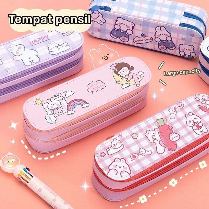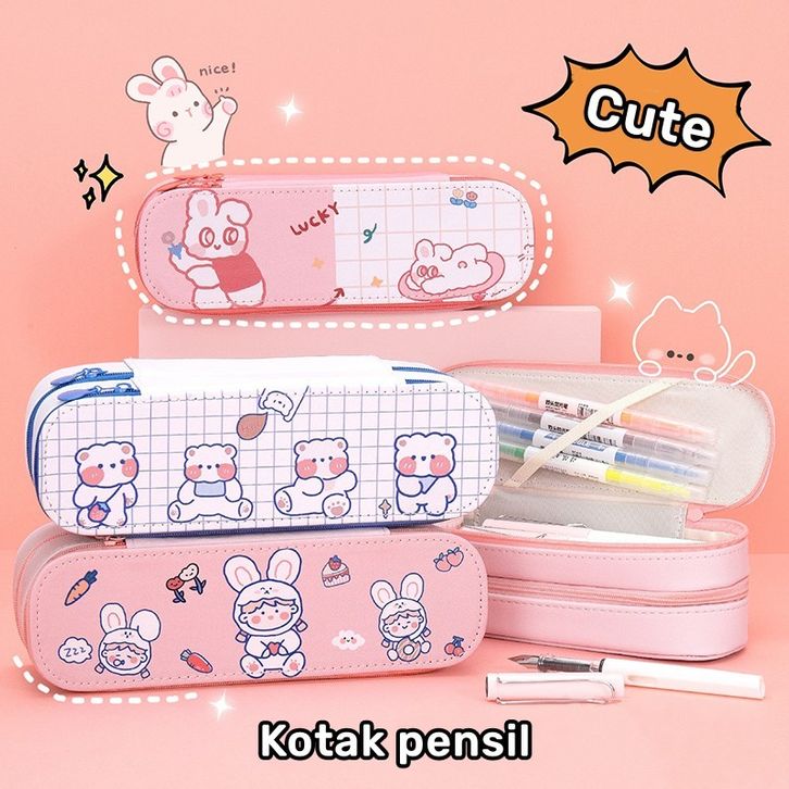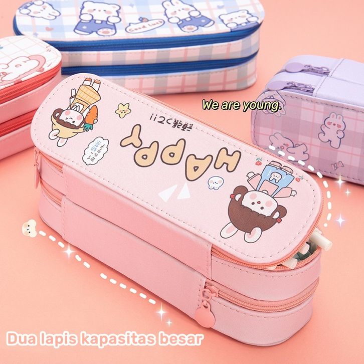 Tempat Pensil Anak Perempuan dan Laki-laki Sekolah Kotak Pensil 2 Susun Motif Kelinci Karakter Lucu Kartun Terlaris