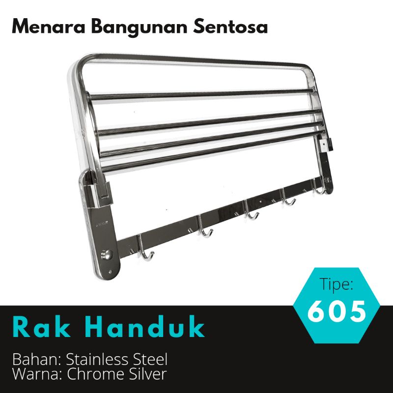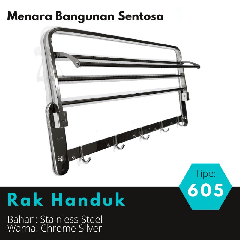 Gantungan Rak Handuk Stainless 605 Chrome Lipat 70cm - Rack Hanger Baju Kamar Mandi