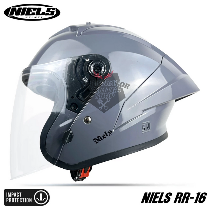 Helm Niels Half Face RR16 Visor Bening SNI Original Dewasa Pria Wanita Fullface KYT/NJS/INK/BOGO RETRO/CARGLOSS/ALV