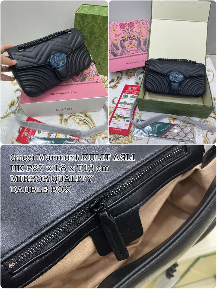 TAS GUCCI MARMONT SO BLACK KULIT ASLI MIRROR VVIP/TAS WANITA GUCI GC 27CM/SHOULDERBAG TAS BRANDED TERBARU