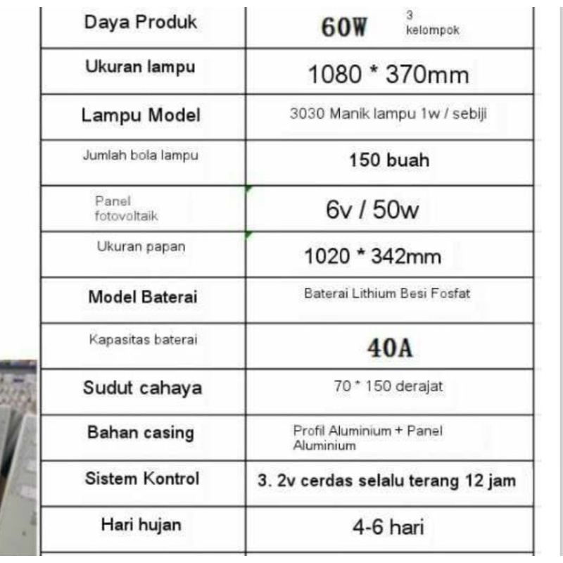 Lampu Solar Cell 60 Watt 60W Lampu Tenaga Surya 60W