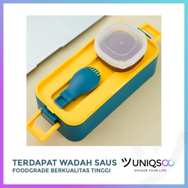 UNIQSOO KOTAK MAKAN 2 TINGKAT PORTABLE 1050ML ADA SAUCE CUP LUNCH BOX 2 LAYER RANTANG MAKANAN SET ANTI TUMPAH SOUVENIR