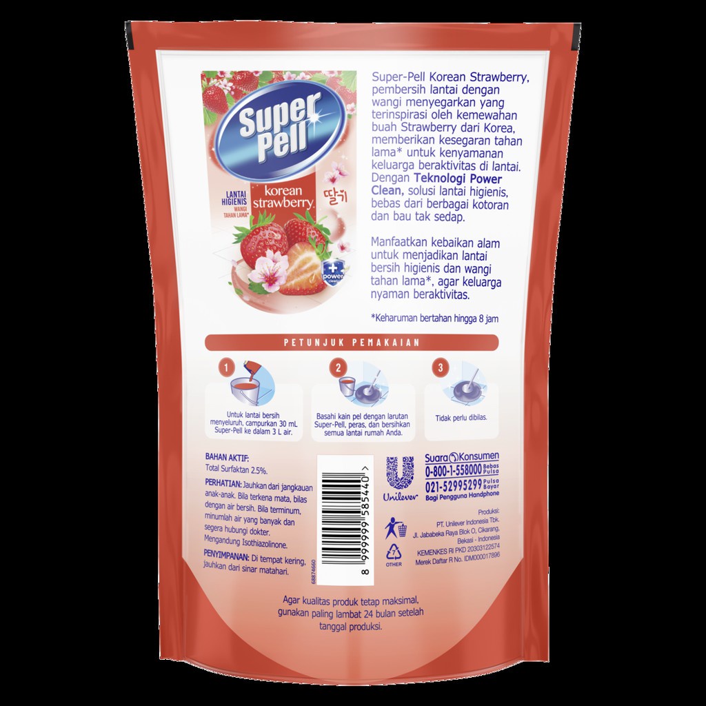 SUPERPELL PEMBERSIH LANTAI PEL LANTAI HARUM & WANGI KOREAN STRAWBERRY 770 ML