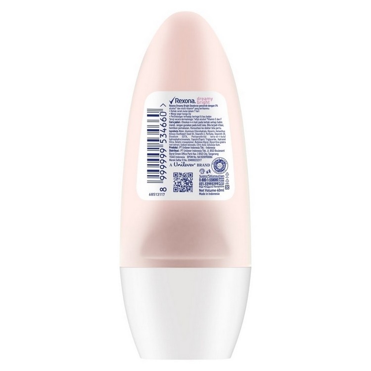 REXONA ROLL ON DEODORANT ANTIPERSPIRANT DREAMY BRIGHT FORMULA PENCERAH 0 PERSEN ALKOHOL 40ML