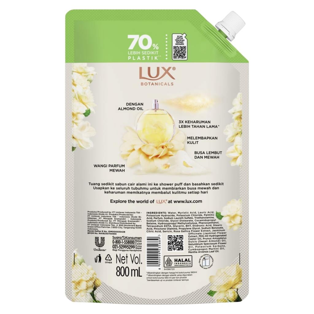 LUX BOTANICALS SABUN MANDI CAIR VELVET JASMINE 800 ML X2