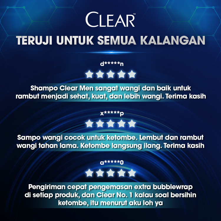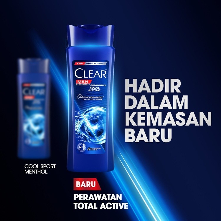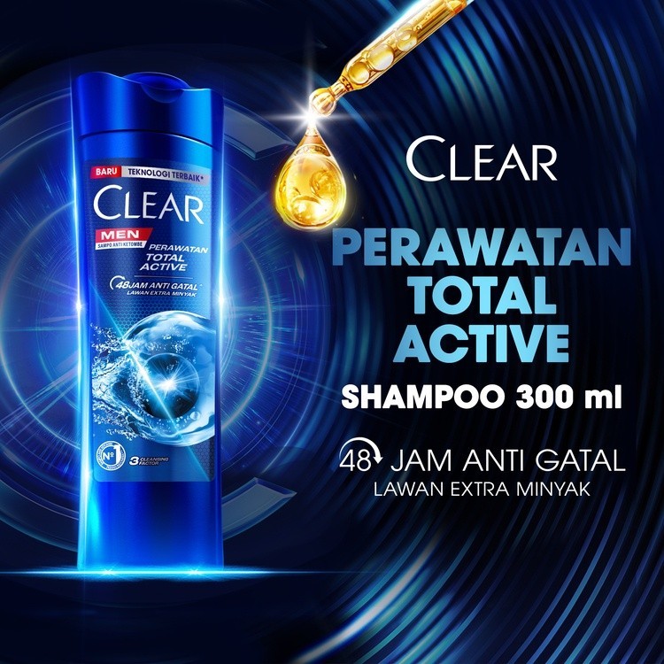 CLEAR MEN SHAMPOO ANTI KETOMBE PERAWATAN TOTAL ACTIVE DENGAN 3 CLEANSING FACTOR ANTI GATAL LAWAN EXTRA MINYAK 300ML