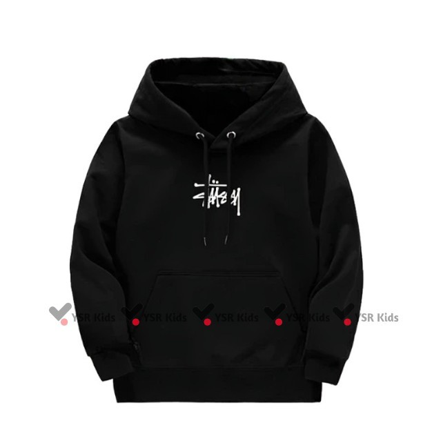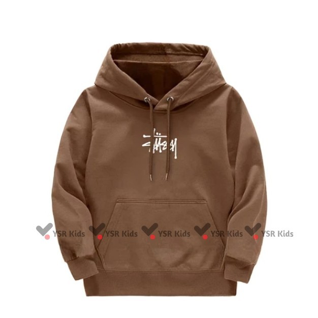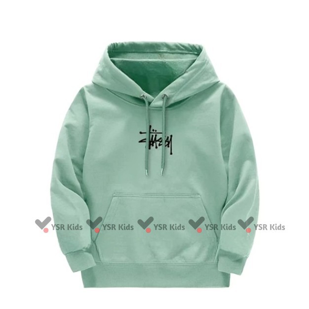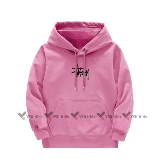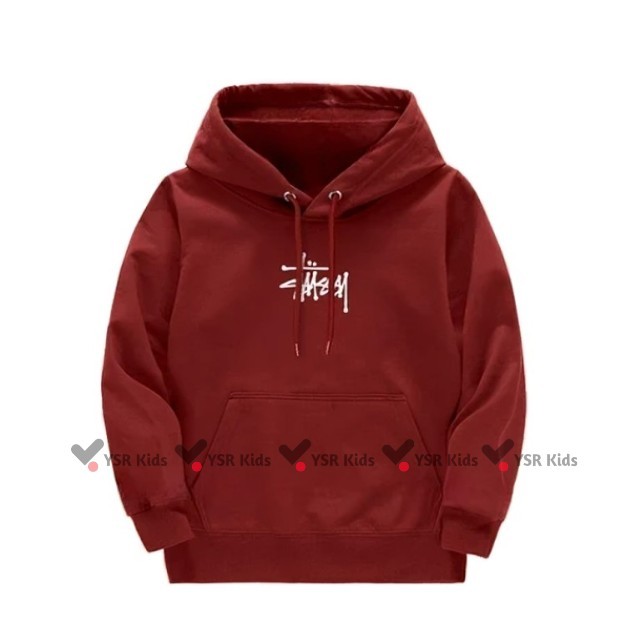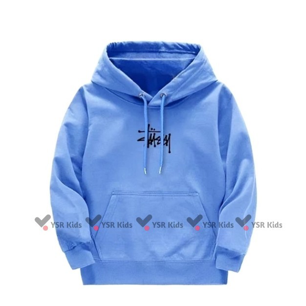 SWEATER HOODIE ANAK LAKI-LAKI/PEREMPUAN USIA 2-12 TAHUN – MOTIF SABLON STUSSY LOGO – BAHAN TEBAL PREMIUM
