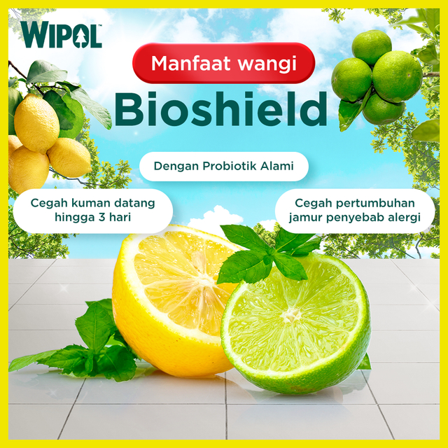 WIPOL PEMBERSIH LANTAI CAIRAN DISINFEKTAN TERUJI DERMATOLOGIS CITRUS FRESH BIOSHIED 390 ML