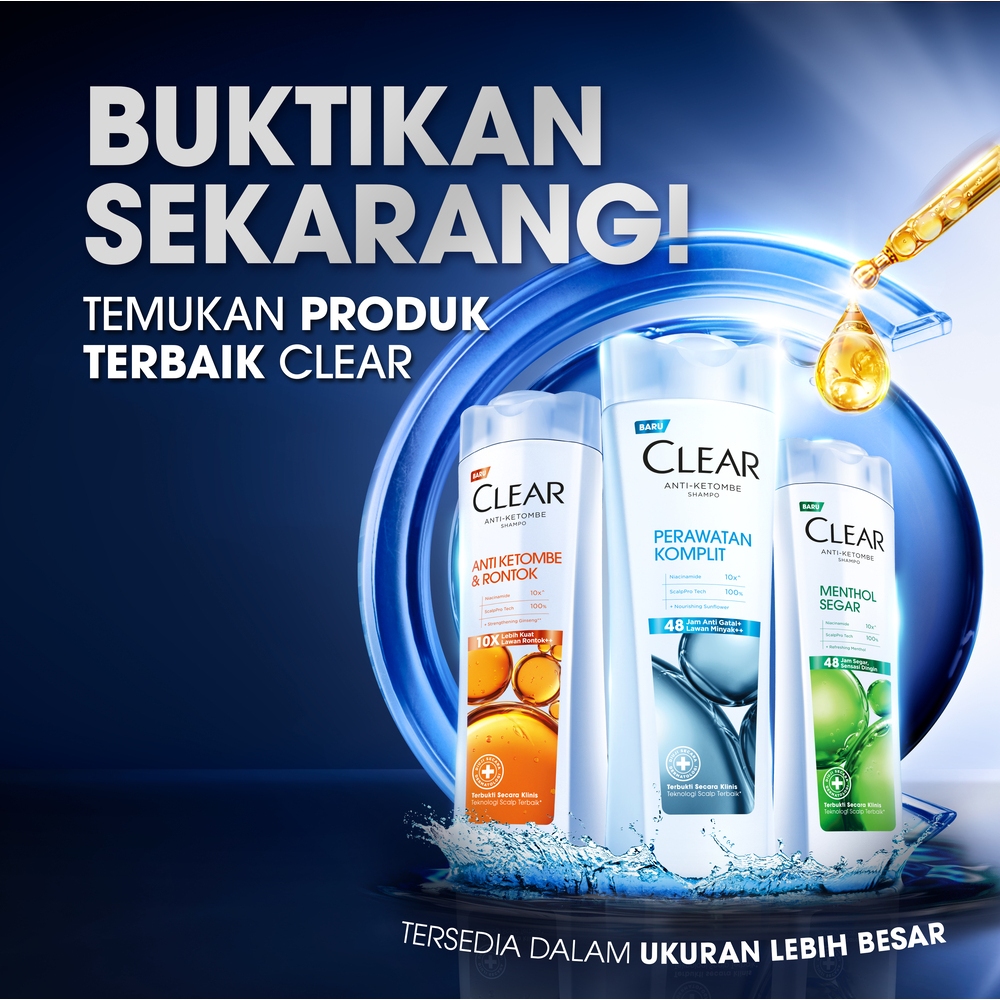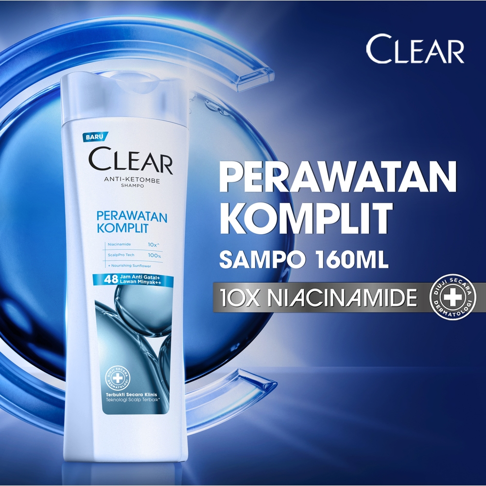 CLEAR SHAMPOO ANTI KETOMBE PERAWATAN KOMPLIT 48 JAM MELINDUNGI DARI GATAL DAN LAWAN MINYAK DENGAN 10X SUPER VITAMIN 160ML