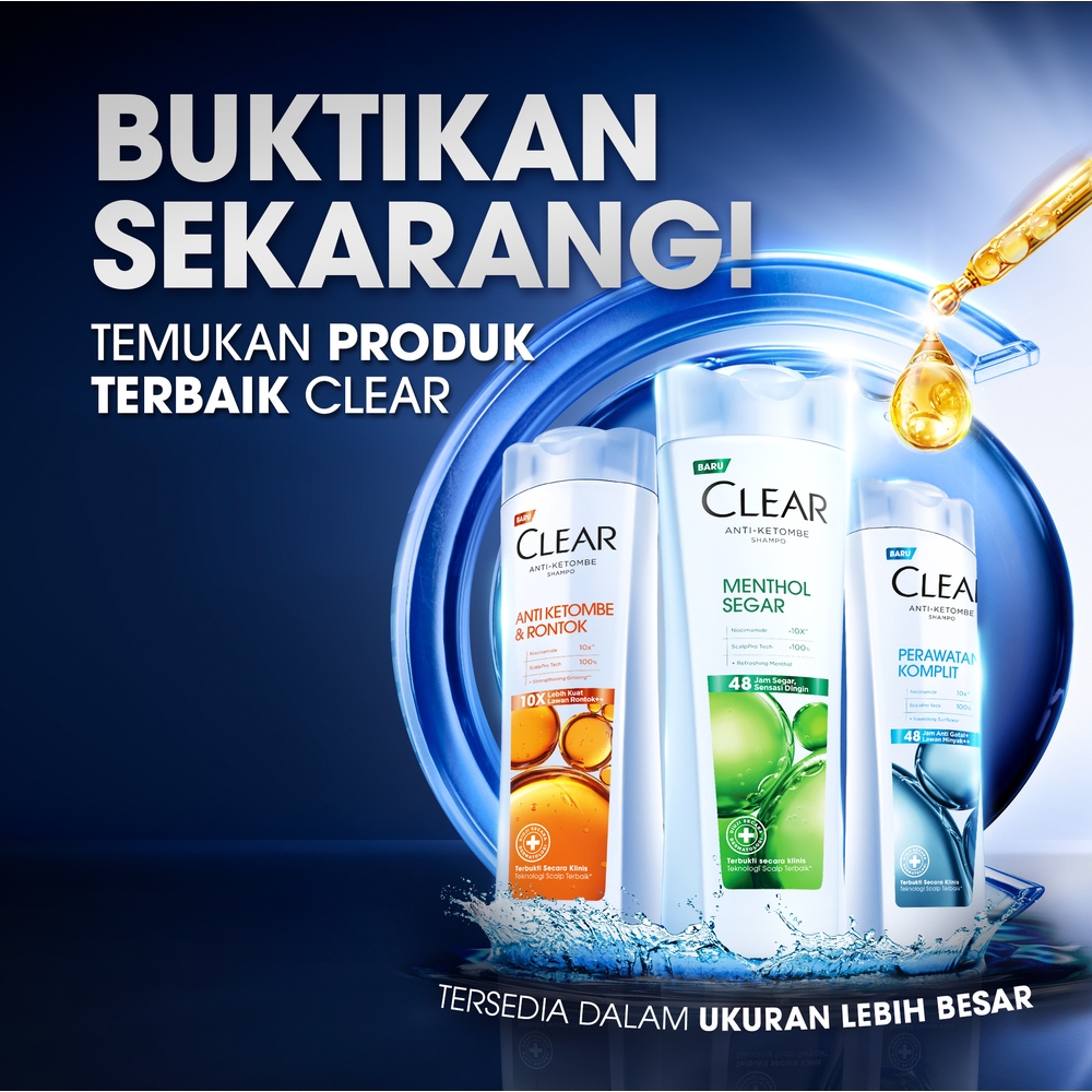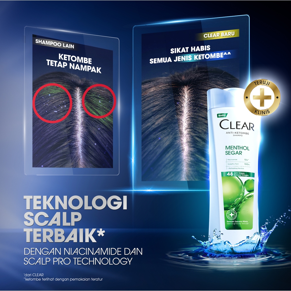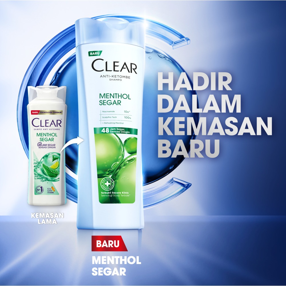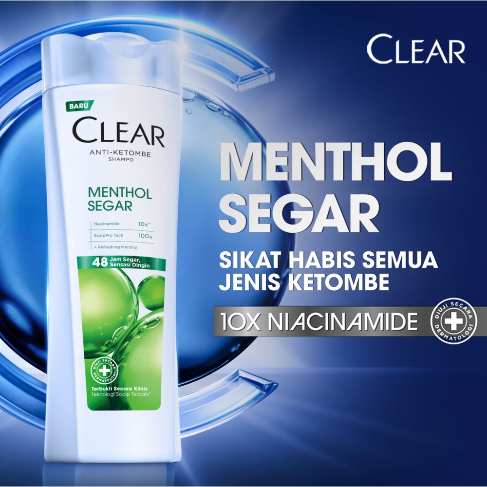 CLEAR SHAMPOO ANTI KETOMBE MENTHOL SEGAR 48 JAM SEGAR SENSASI DINGIN DENGAN 10X SUPER VITAMIN 300ML