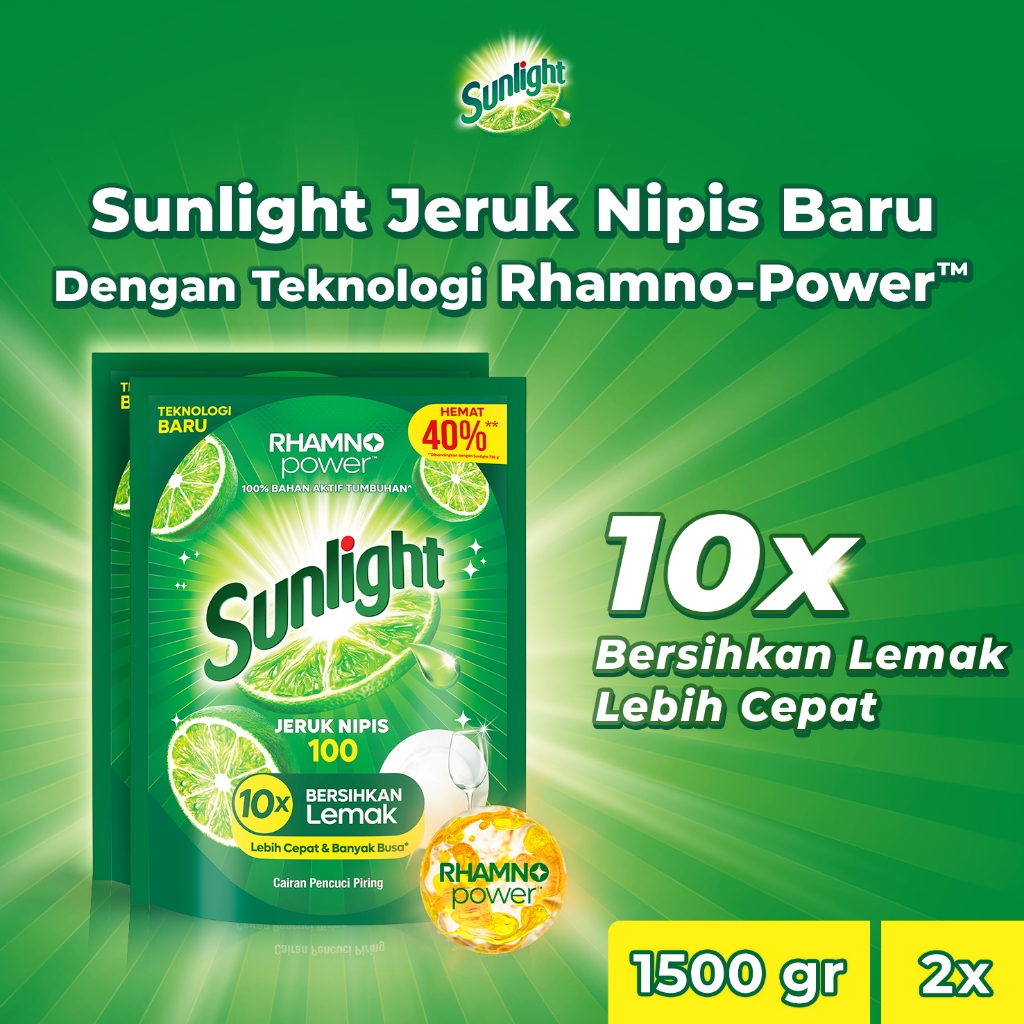 SUNLIGHT SABUN CUCI PIRING JERUK NIPIS REFILL 1500GR X2