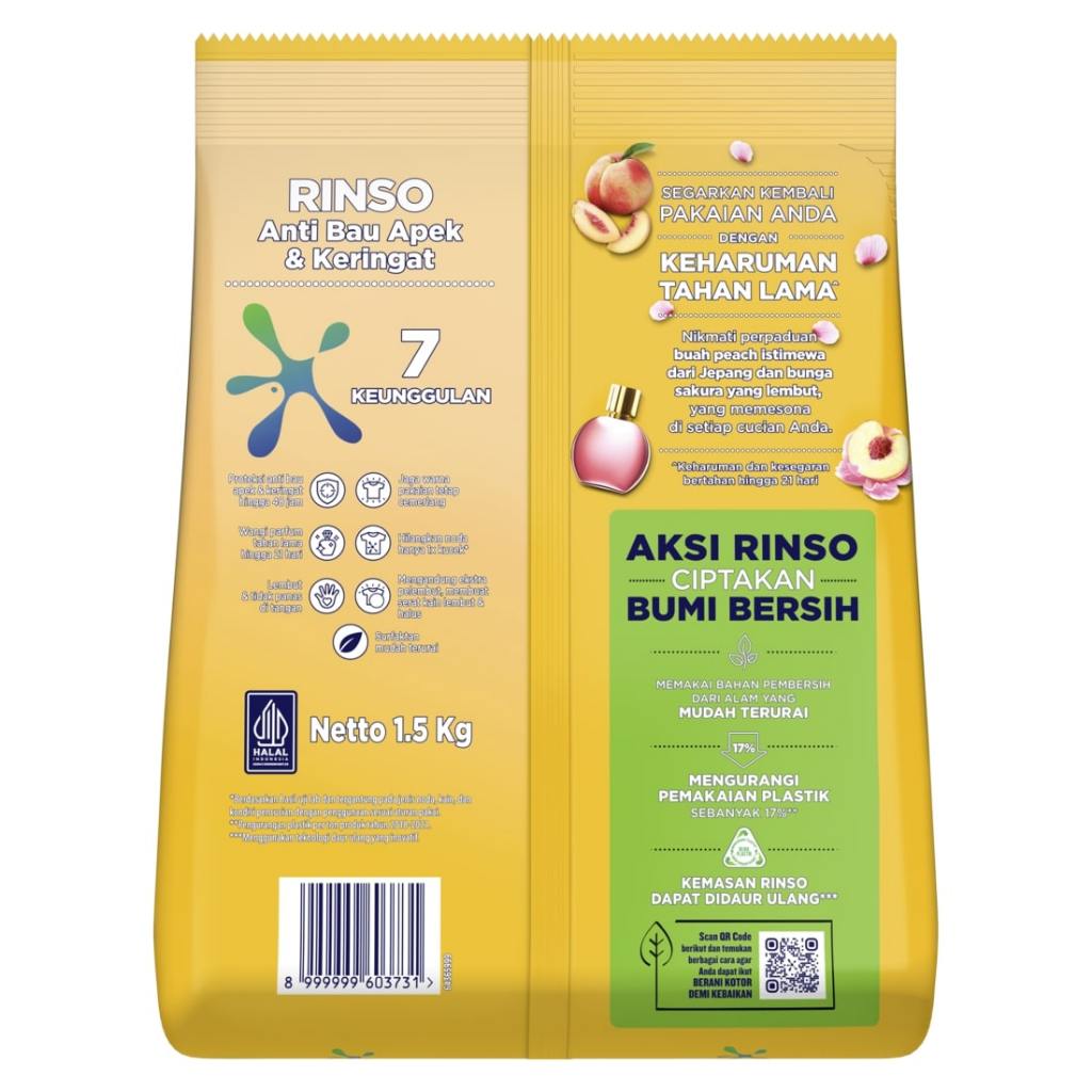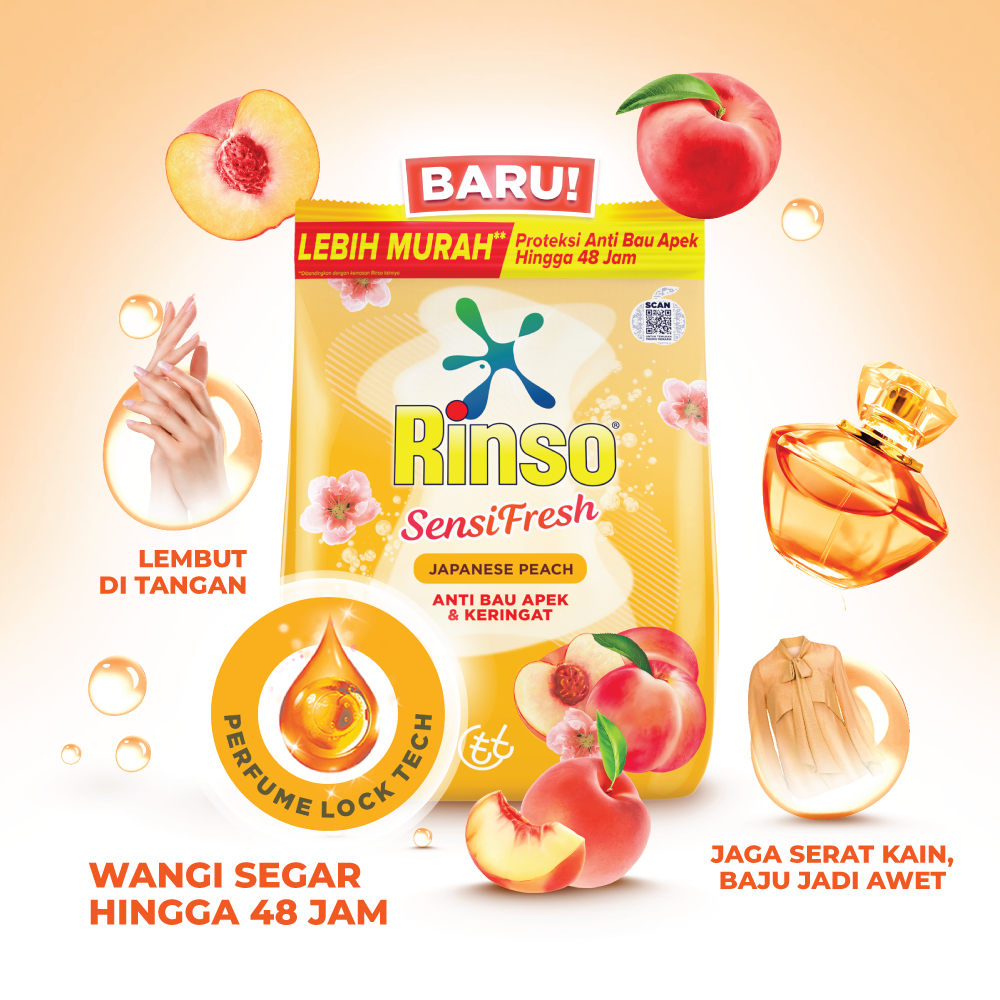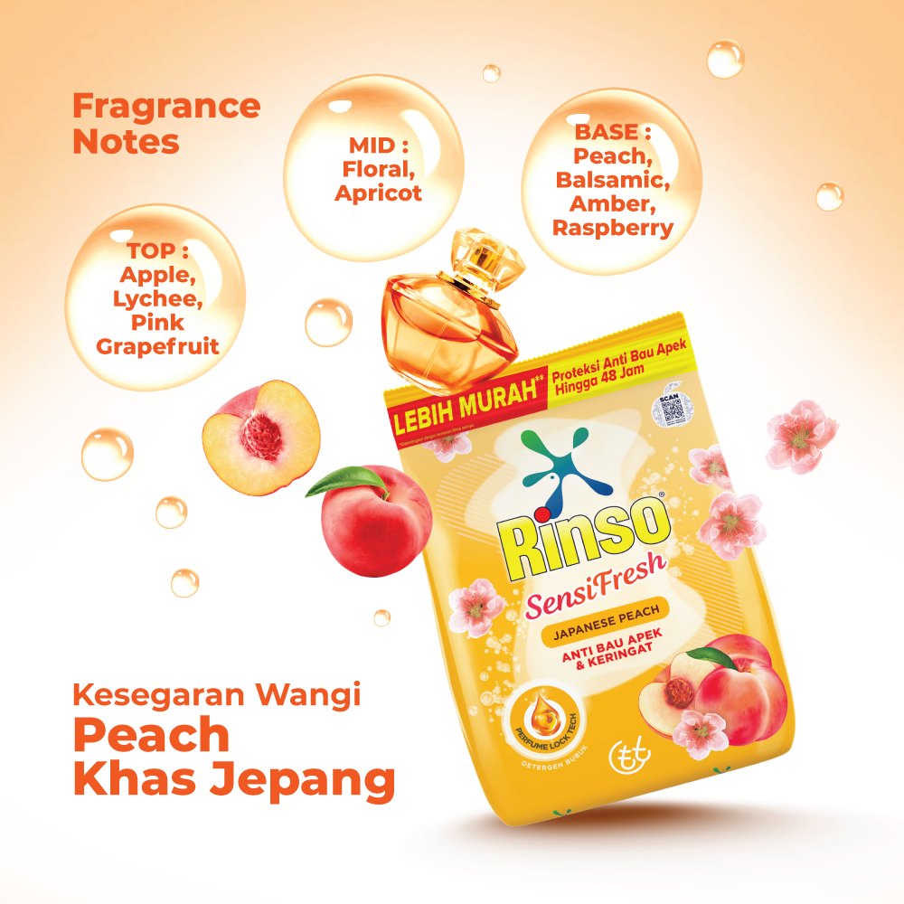 RINSO SENSIFRESH DETERGENT BUBUK DETERJEN WANGI SEGAR 48 JAM JAPANESE PEACH 15 KG X2