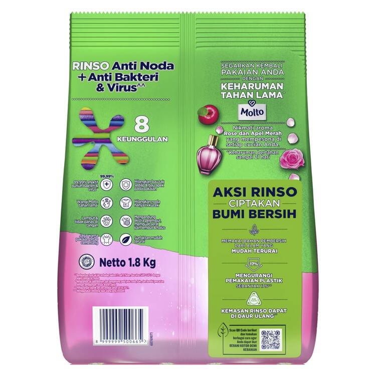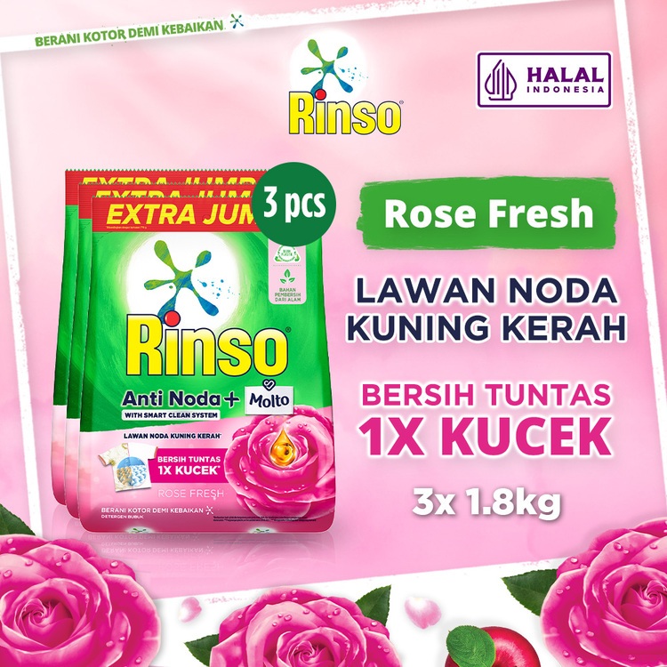 RINSO MOLTO DETERGENT BUBUK DETERJEN ANTI NODA ROSE FRESH 18 KG X3