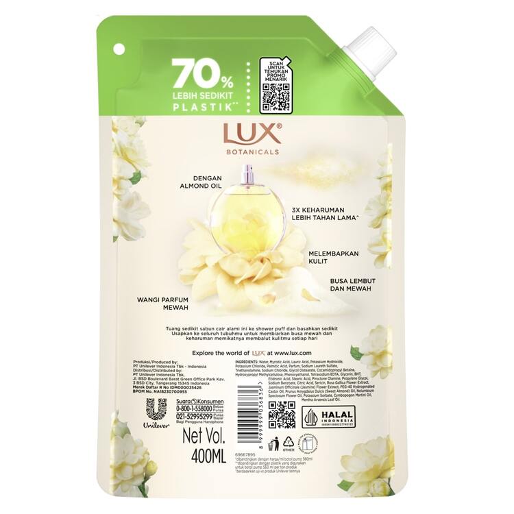 LUX BOTANICALS SABUN MANDI CAIR VELVET JASMINE 400 ML