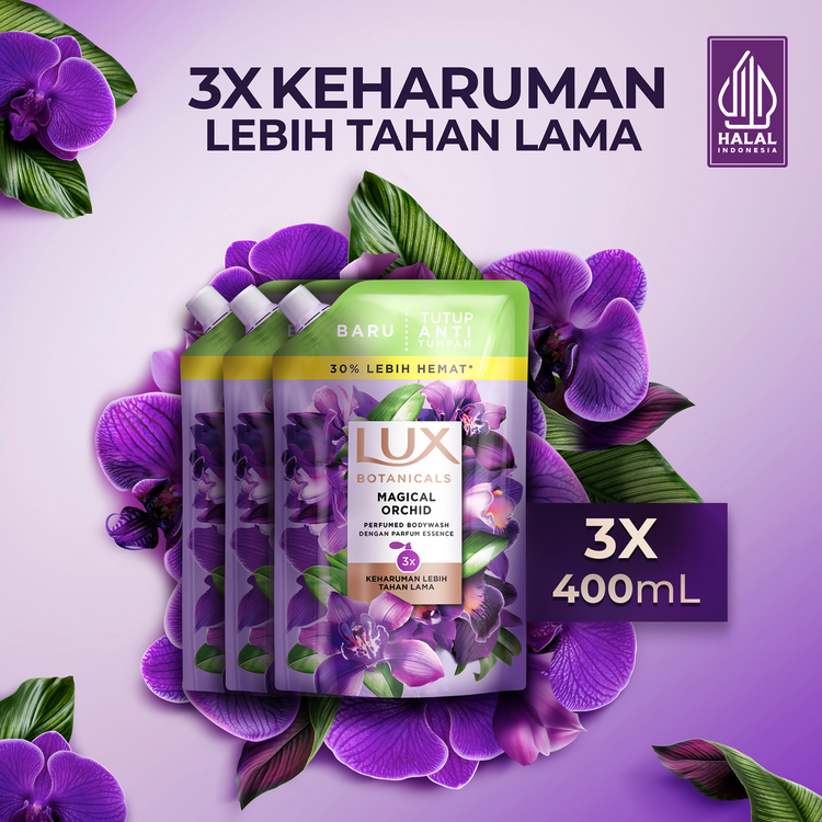 LUX BOTANICALS SABUN MANDI CAIR MELEMBAPKAN MAGICAL ORCHID 400 ML X3
