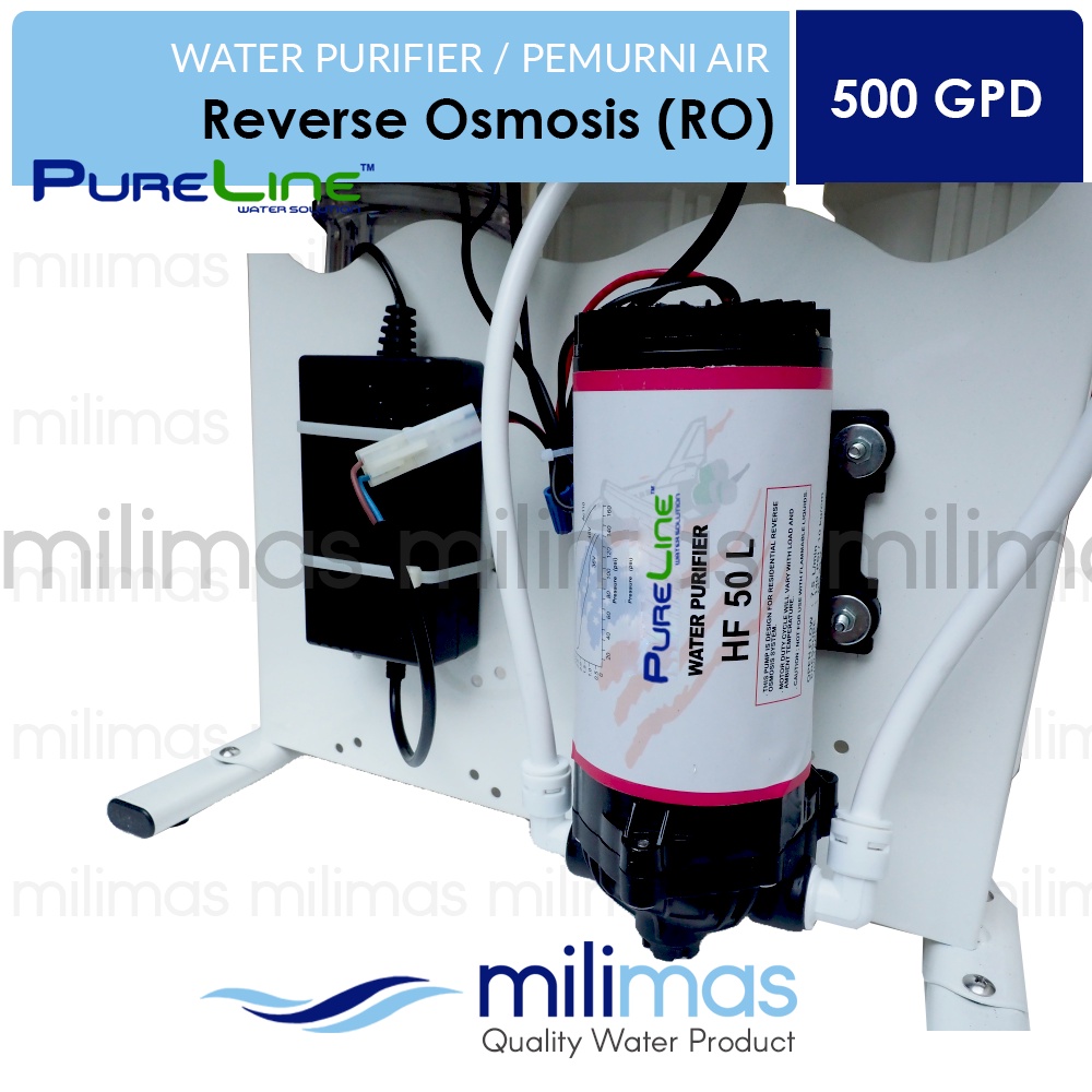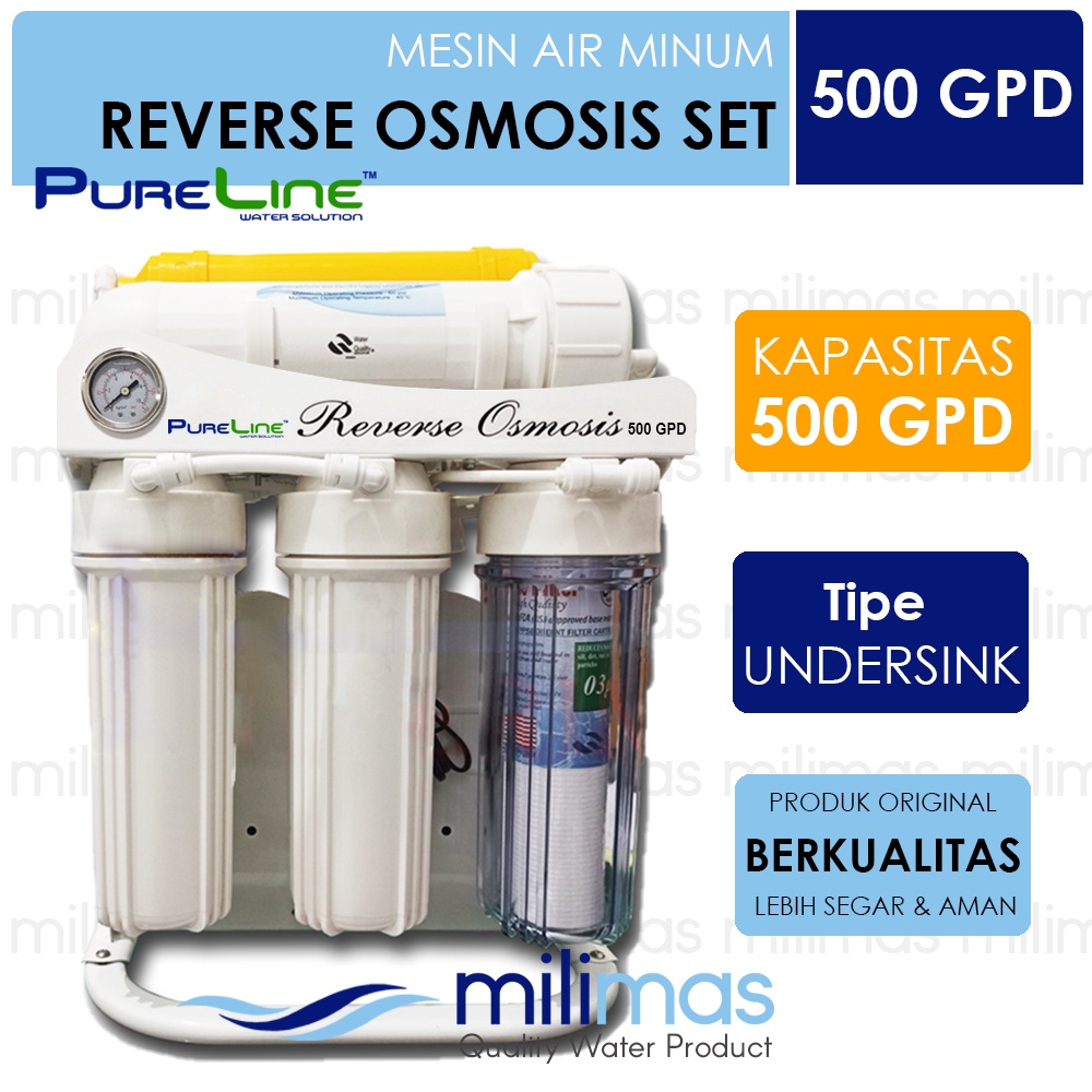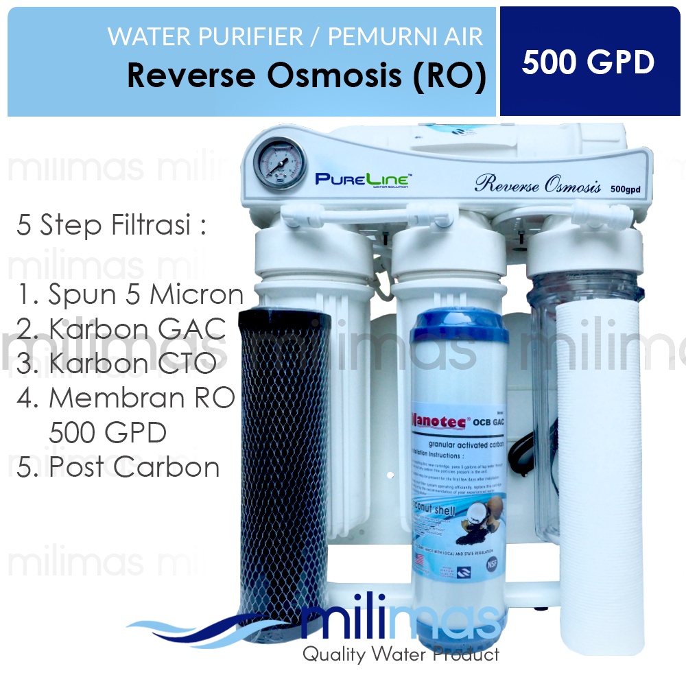 PURELINE - Mesin Air Minum RO Set Siap Pakai 5 Step Uk.500 GPD - MICRON Tipe STAND