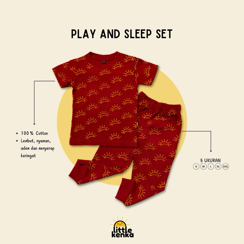 LITTLE KENKA - PLAY AND SLEEP SET - SETELAN BAJU TIDUR / PIYAMA ANAK BAJU KAOS LENGAN PENDEK CELANA PANJANG UNISEX LAKI-