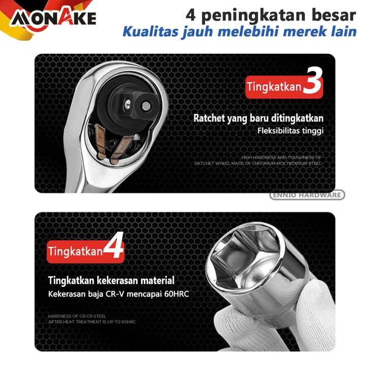 MONAKE German Tool Kunci Sok Set 12/32/37/46/53/61/82/94 pcs Set 1/2'' and 1/4'' inch Set Lengkap Kunci Mata Sok Potong