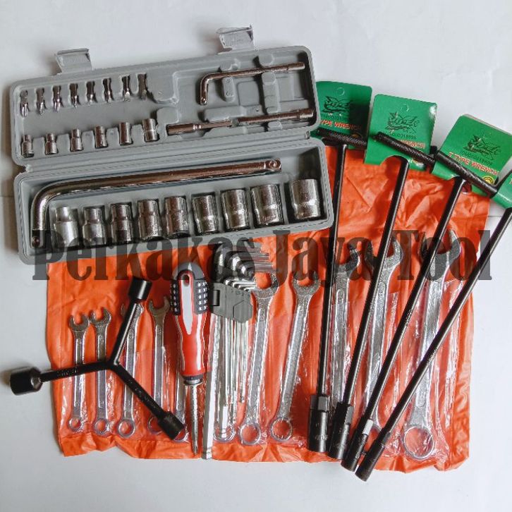 Terbaru Paket Kunci Ring Pas Set + Kunci Sock Set 27 pcs + Kunci L + 4pcs Kunci T + Kunci Y + Obeng