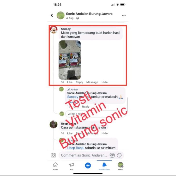 sonic sepaket isi 2 botol vitamin semua burung harian dan lomba gacor