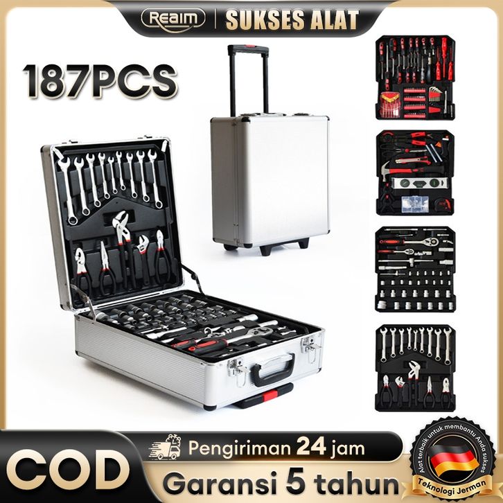Reaim Tool Kit 187 PCS Perkakas Bengkel Dan Rumah Koper Lengkap Perkakas Bengkel Lengkap Bahan Kuat/kunci shock set