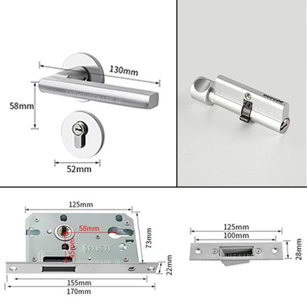 Kunci Pintu Full Handle Set Gagang Pintu Lurus Putih Silver Premium