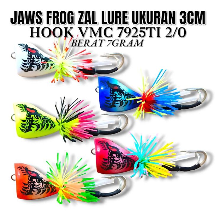 JAWS FROG ZAL LURE UKURAN 3CM. HOOK VMC 7925TI 2/0. BERAT 79ram. UMPAN CASTING GABUS DAN TOMAN