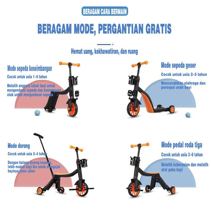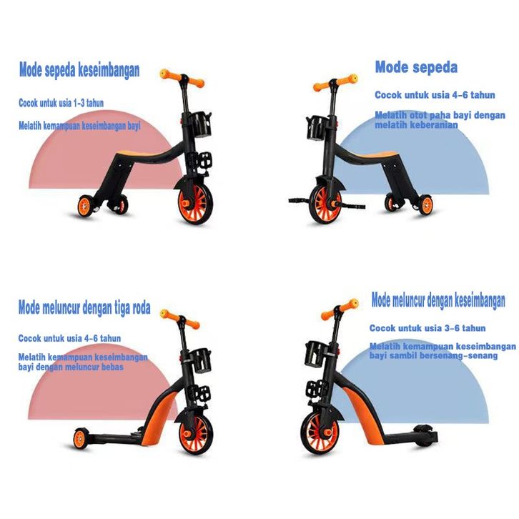 TERBARU Marivelle Skuter Anak Balance Bike Sepeda Anak Roda 3 Push Bike 8 Mode (8 in 1) IORA T20-3 PMB ogolb