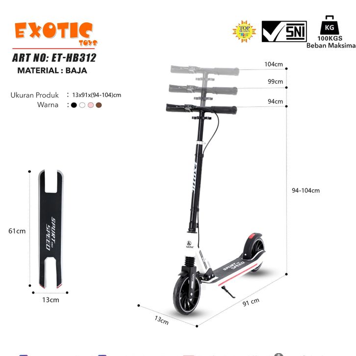 TERLARIS Scooter Anak EXOTIC SCOOTER ET-HB312 (REM SHOCK STEEL ) ET HB312 BEBAN MAX 100KG acomnl
