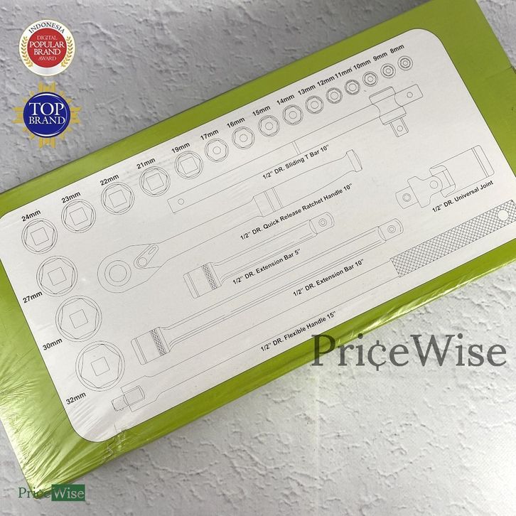 Kunci Sok Set 24 pcs 6 PT 12 PT 8-32 mm // Hand Socket / Kunci Sock Box Besi Tekiro Silver Matt