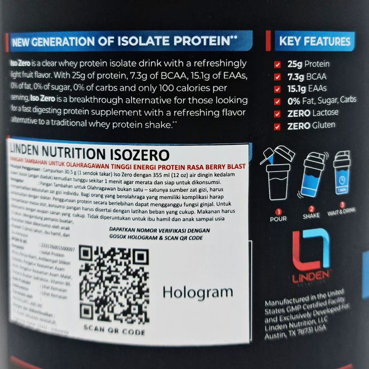 Iso Zero 1 lbs Linden Nutrition Whey Protein Isolate Lin Whey