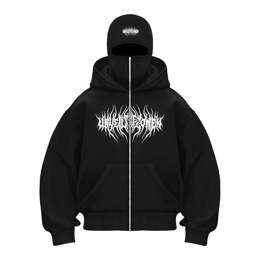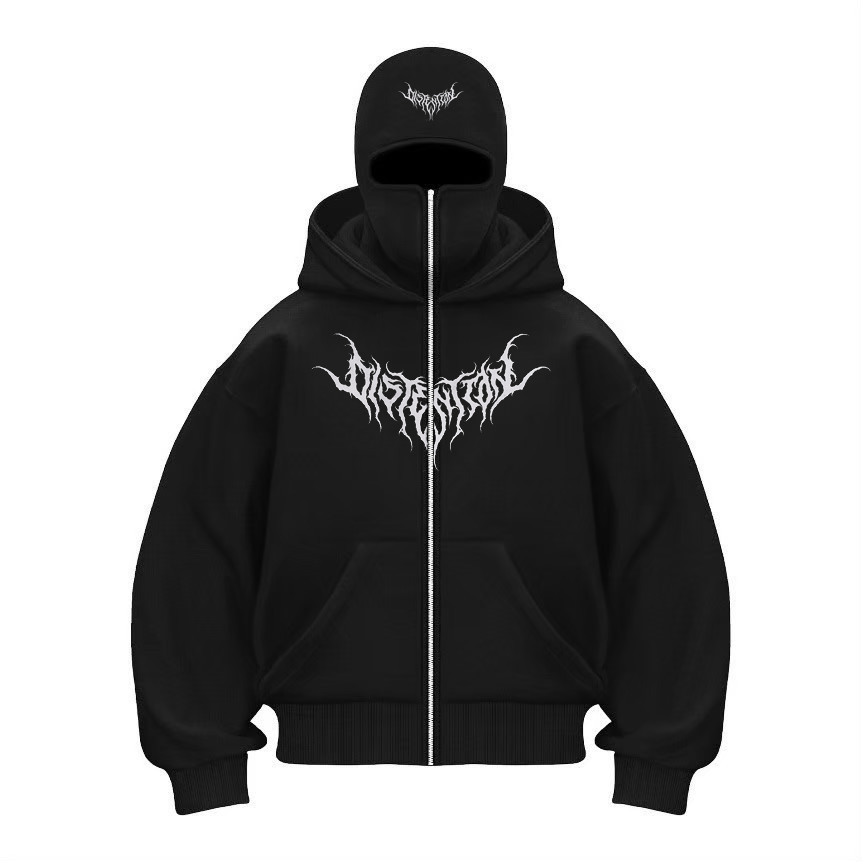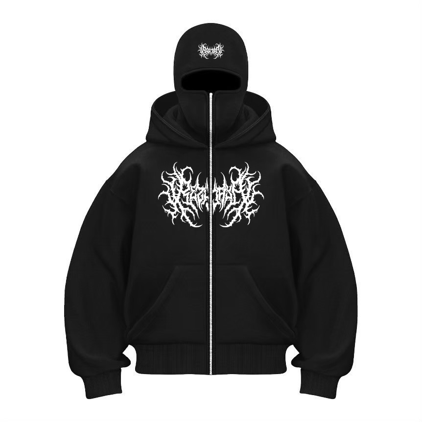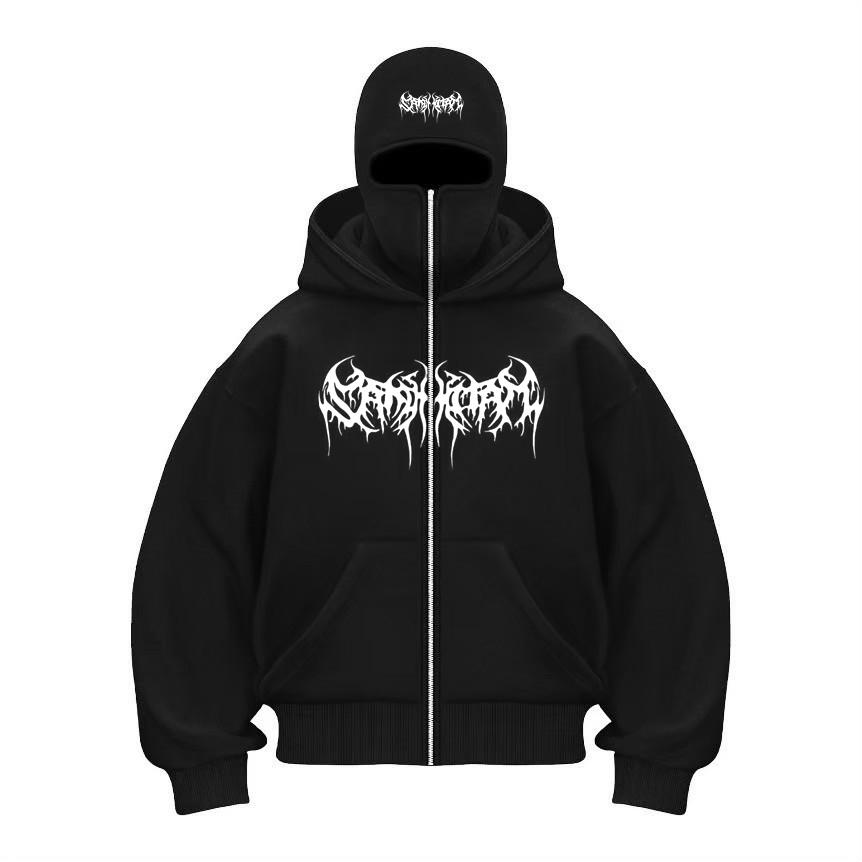HOODIE BALACLAVA METAL ZIPPER JAKET BOXY HITAM 040