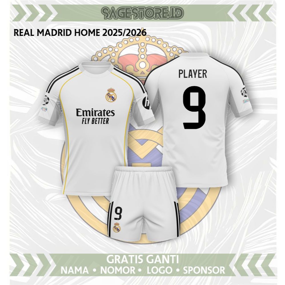 JERSEY REAL MADRID 2025/2026 FULL PATCH CHAMPION 15 HOME DEWASA ANAK SETELAN BAHAN DRYFIT FULL PRINTING