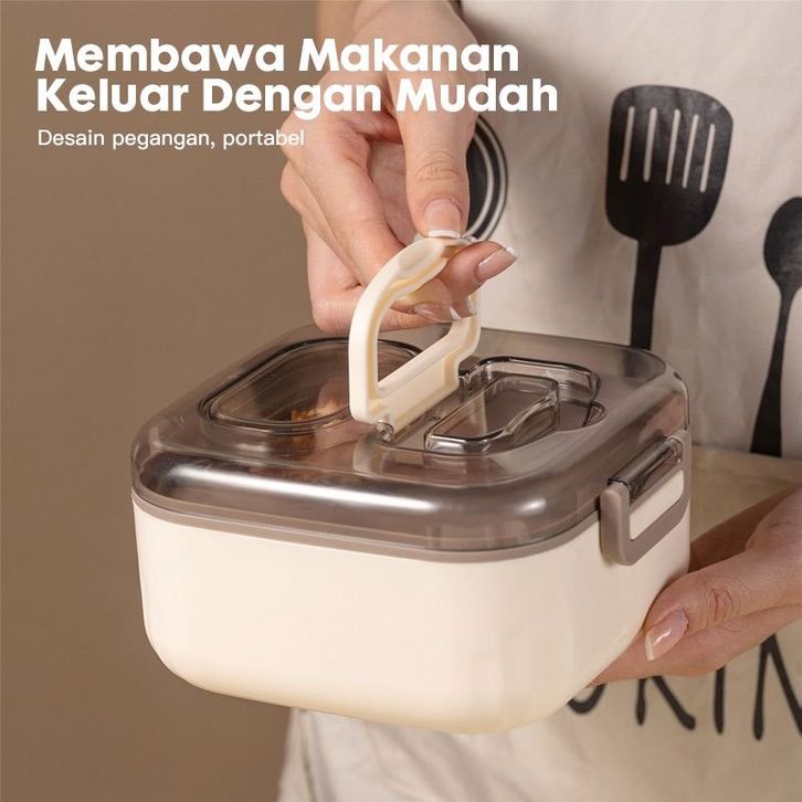 EATKIT LUNCH BOX MICROWAVE SAFE 950ML KOTAK MAKAN SIANG 3 GRID ANTI TUMPAH TAHAN PANAS FREE SENDOK