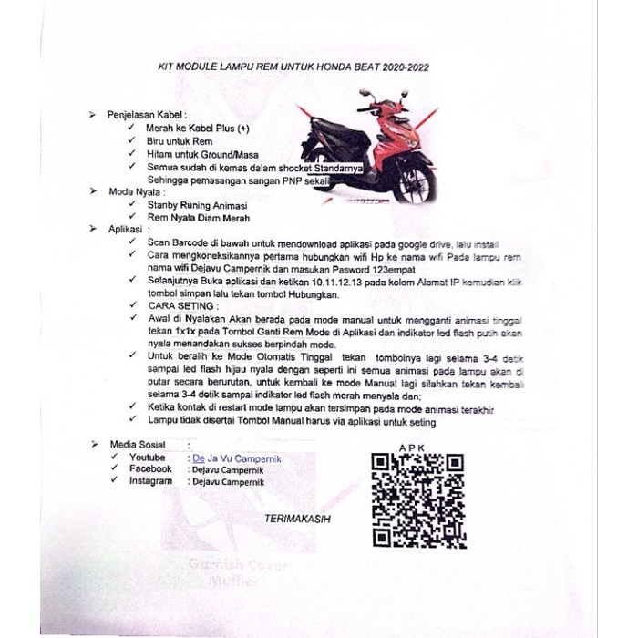 STOPLAMP RUNING RGB BEAT 2020-2023/DELUXE + APLIKASI