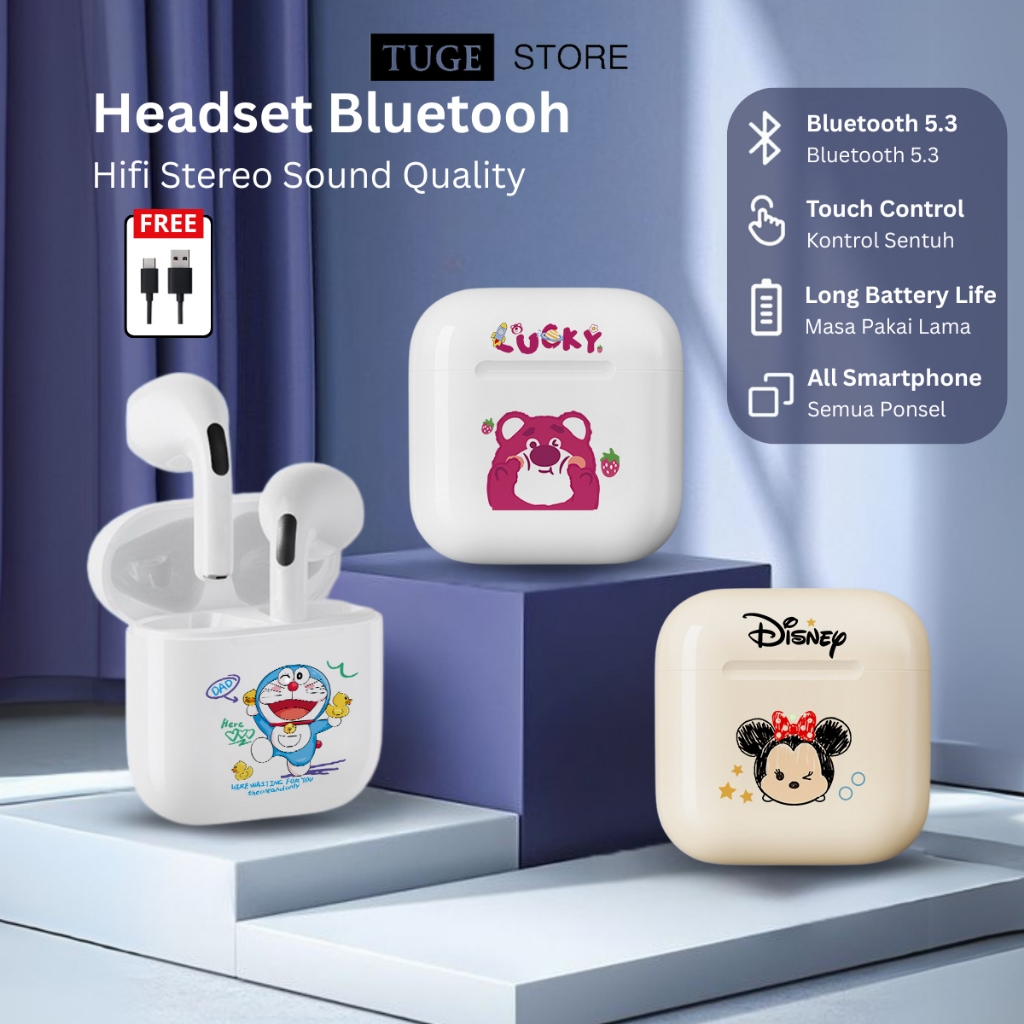 [Star]Headset Bluetooth TWS Karakter Gaming Earphone Wireless Inpods Full Bass Earbud Headphone Nirkabel Kontrol Sentuh