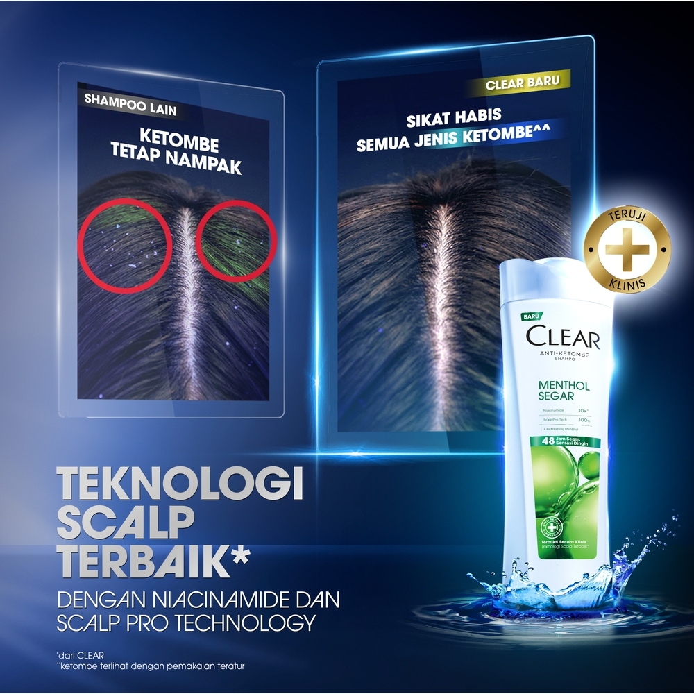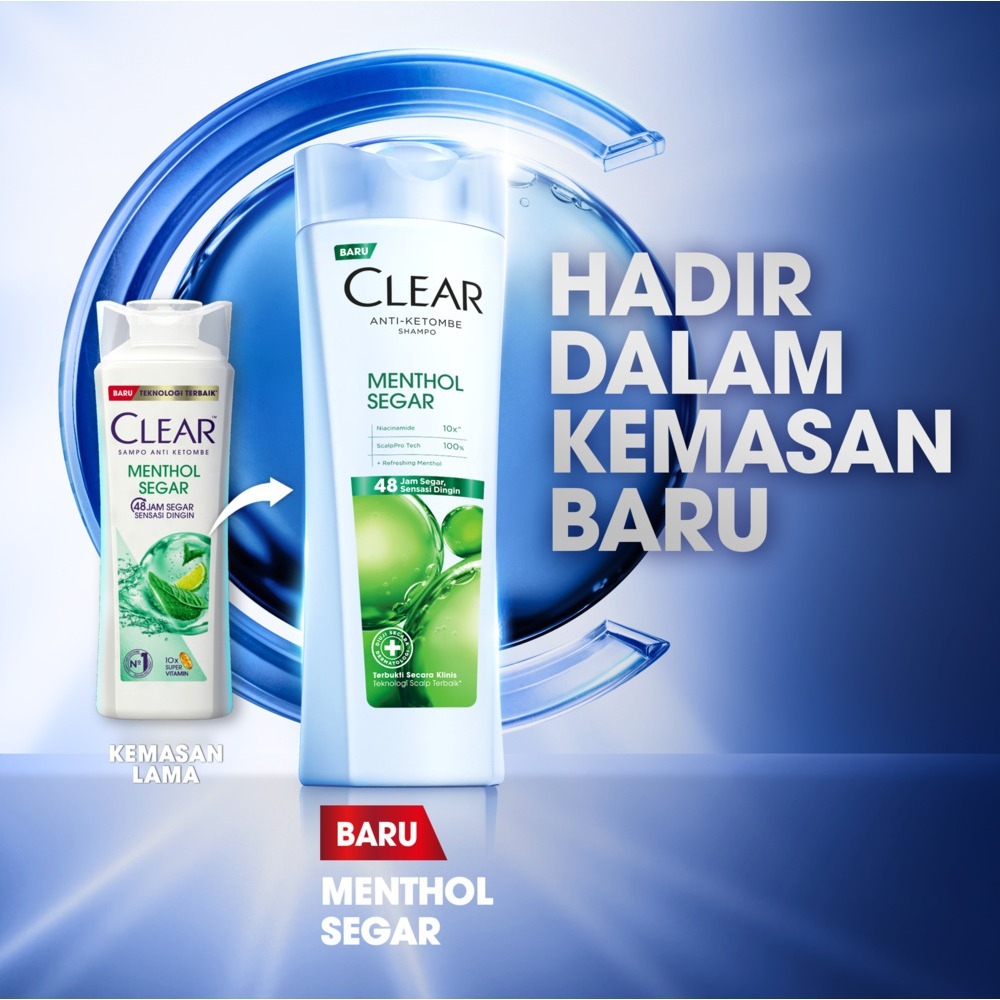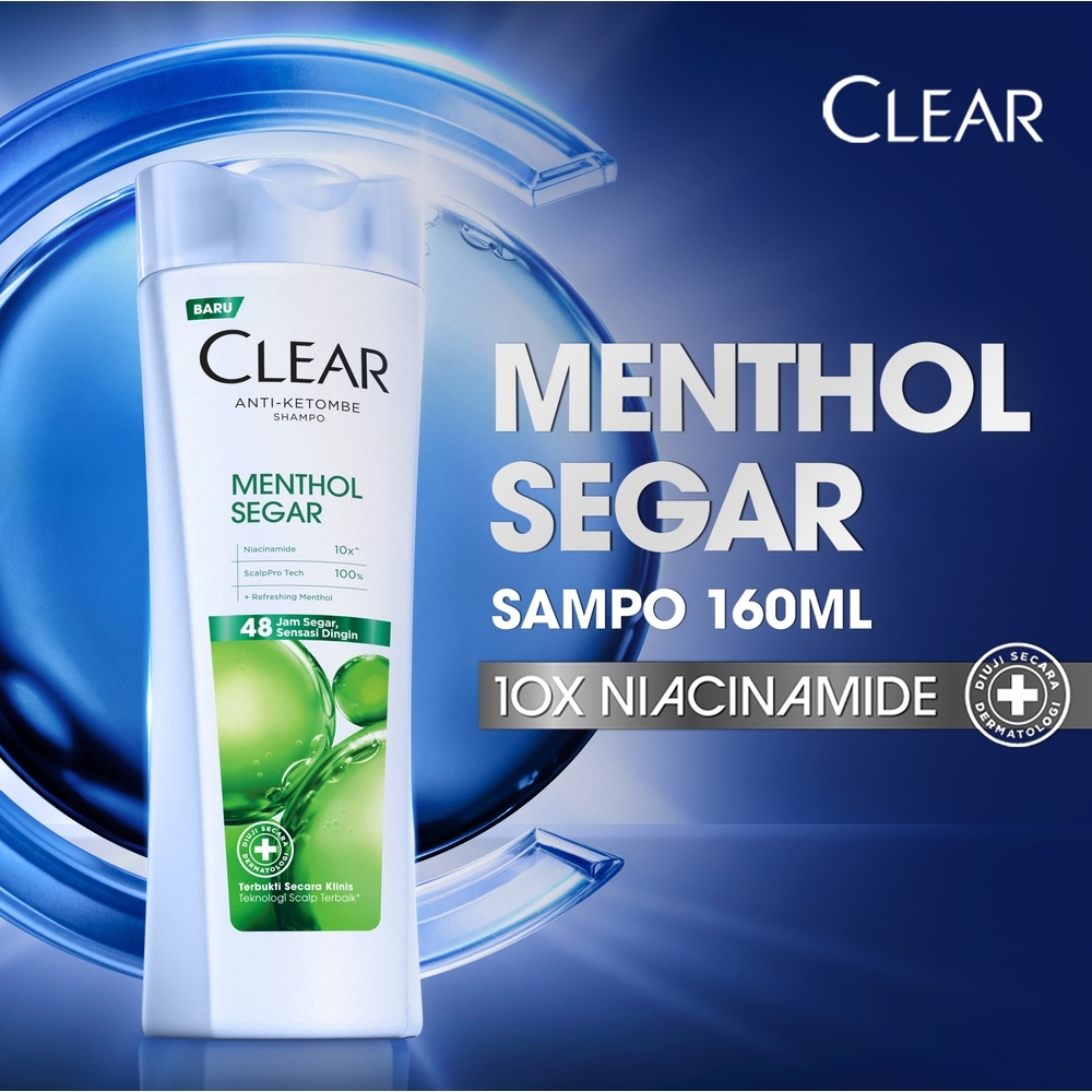 CLEAR SHAMPOO ANTI KETOMBE MENTHOL SEGAR, 48 JAM SEGAR SENSASI DINGIN DENGAN 10X SUPER VITAMIN - 160ML