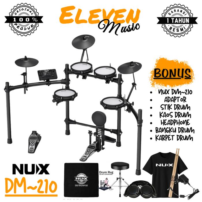 Paketan NUX DM-210 DM210 DM 210 Digital Drum Elektrik dengan Bangku Drum, Headphone, Kaos NUX,