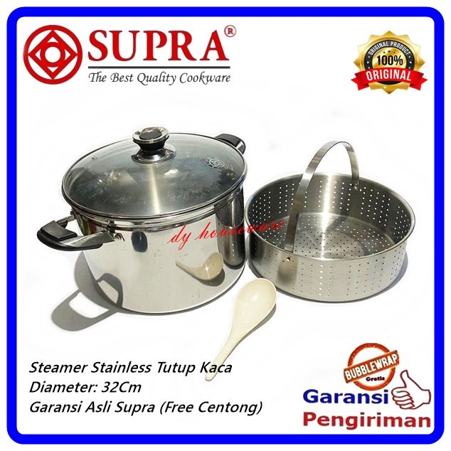 Terlaris Panci Kukus Stainless Steel Panci Steamer Langseng Stainles Tutup Kaca Kukusan Nasi 32 Cm Supra Keren