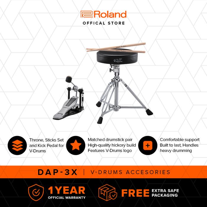 Roland DAP-3X V-Drums Accessory Paket Kursi Kick Pedal dan Stick Drum
