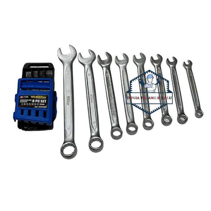PROMO MOLLAR - Kunci Ring Pas Set 8pcs 8-19mm CrV Cold Stamp - Kunci RingPas Kombinasi Set 8 Bj Rak Plastik - Combinati