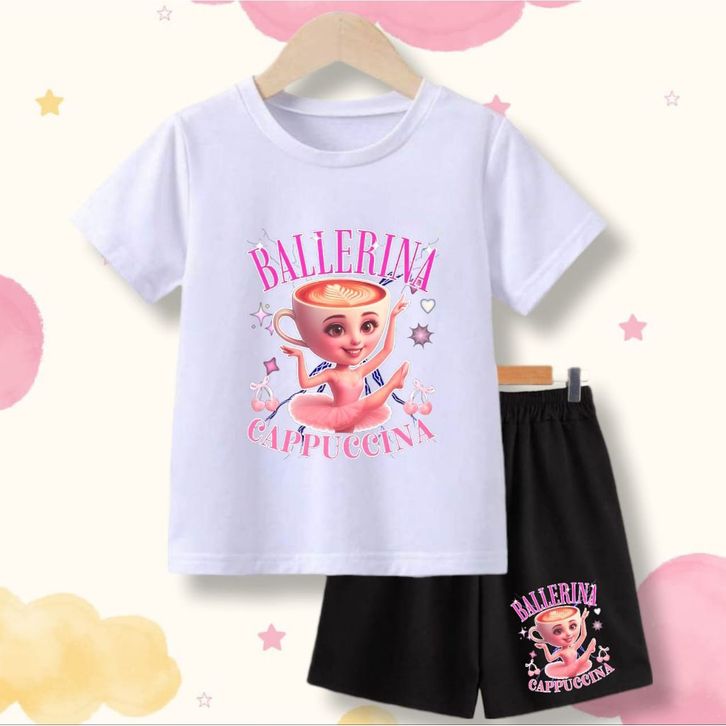 Baju Set Anak SETELAN KAOS ANAK PEREMPUAN 2-8 TAHUN BALLERINA CAPPUCCINA ANOMALI