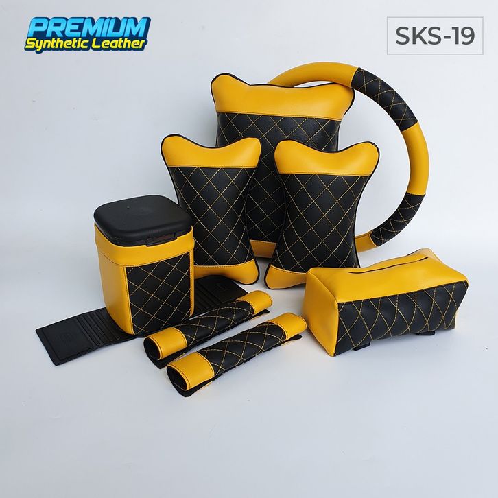Set Bantal Mobil 5 in 1 plus Sarung Stir Mobil Bantal Headrest Mobil