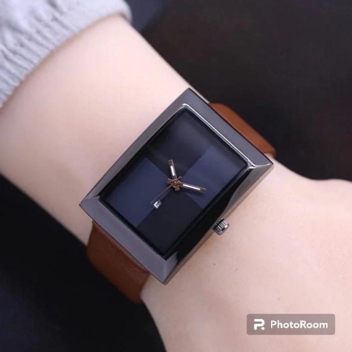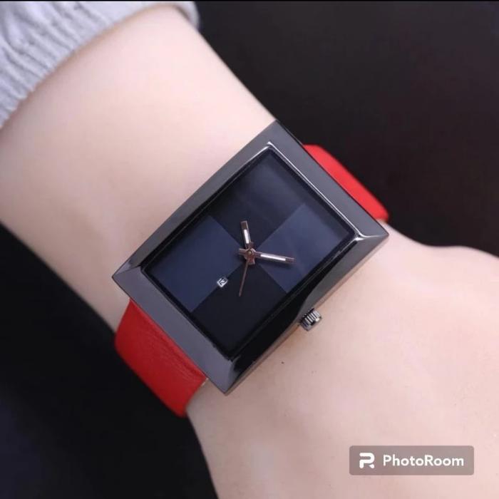 - JAM TANGAN WANITA FOXXIL BODY KOTAK LEATHER KULIT F-9191 TANGGAL AKTIF FREE BOX ANALOG