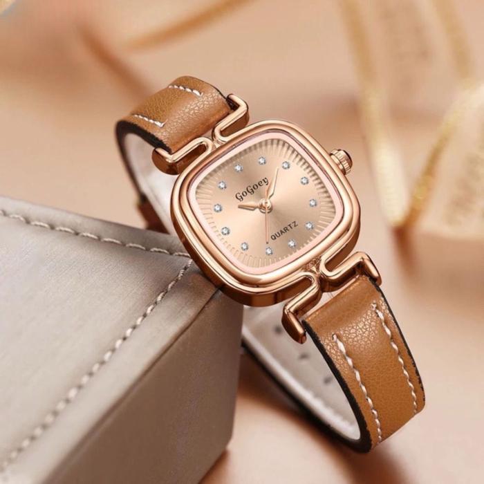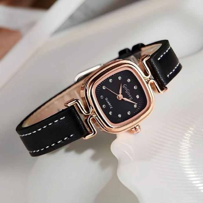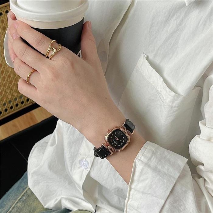 Jam Tangan Wanita Gogoey Model Retro Anggun Berlian Model Segi Tali Kulit Premium