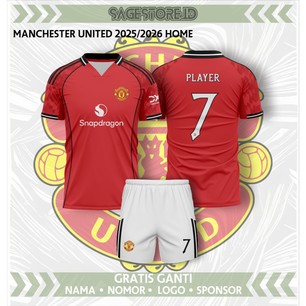 JERSEY MANCHESSTER UNITED 2025/2026 HOME DEWASA ANAK SETELAN BAHAN DRYFIT FULL PRINTING