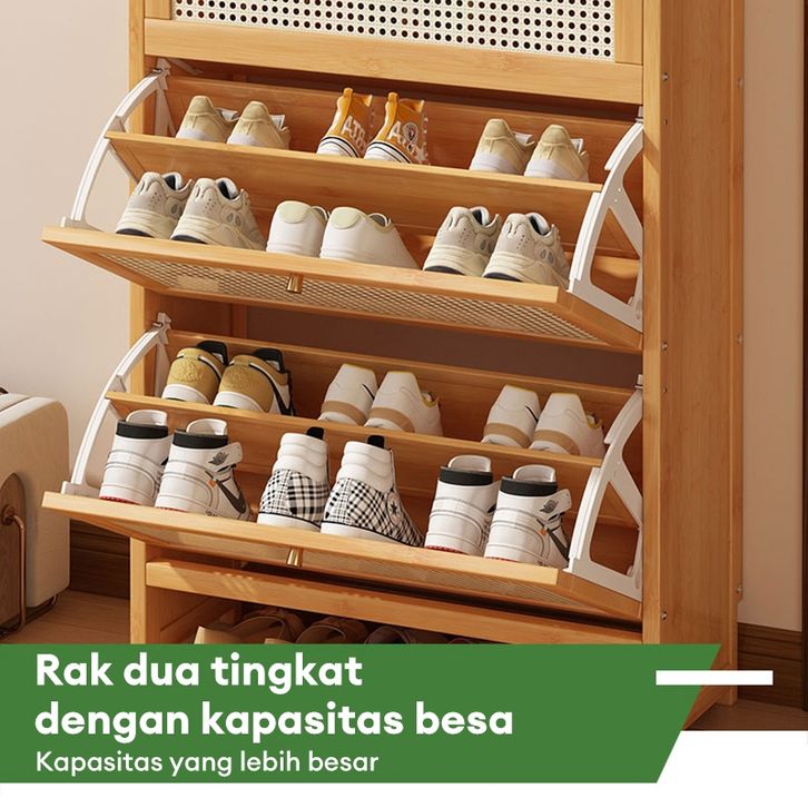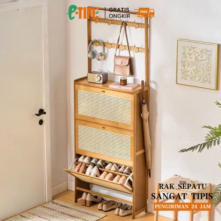 E-TIFE Lemari Rak Sepatu Kayu Dengan Rak Serbaguna Rak Lemari Sepatu Minimalis Kayu Susun Penyimpanan Multifungsi